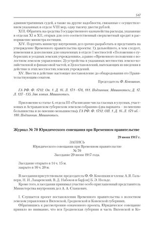 Журнал № 70 Юридического совещания при Временном правительстве. 29 июня 1917 г.