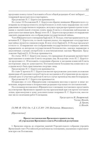 Приложения к журналу № 108. Проект постановления Временного правительства об учреждении Временного совета Российской республики и Положение о Временном совете Российской республики