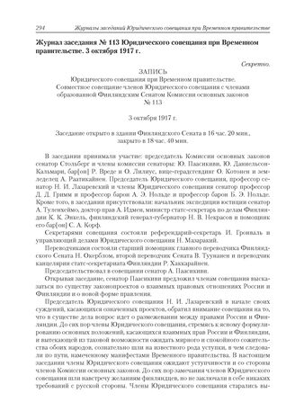 Журнал заседания № 113 Юридического совещания при Временном правительстве. 3 октября 1917 г.