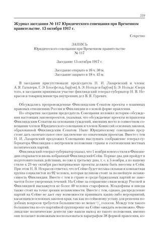 Журнал заседания № 117 Юридического совещания при Временном правительстве. 13 октября 1917 г.