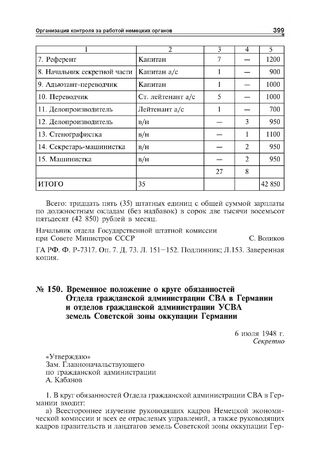 Временное положение о круге обязанностей Отдела гражданской администрации СВА в Германии и отделов гражданской администрации УСВА земель Советской зоны оккупации Германии. 6 июля 1948 г.