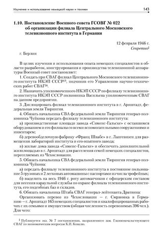 Деятельность управления СВАГ по изучению достижений немецкой науки и техники в Советской зоне оккупации Германии. 1945-1949: Сб. док. — М.: РОССПЭН, 2007.