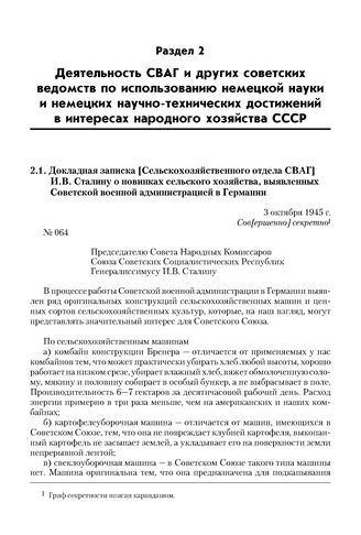 Докладная записка [Сельскохозяйственного отдела СВАГ] И.В. Сталину о новинках сельского хозяйства, выявленных Советской военной администрацией в Германии. 3 октября 1945 г. // ГА РФ. Ф. Р-7317. Оп. 36. Д. 4. Л. 36—39. Копия.
