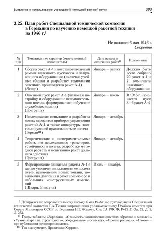 План работ Специальной технической комиссии в Германии по изучению немецкой ракетной техники на 1946 г. Не позднее 6 мая 1946 г. // ГА РФ. Ф. Р-7317. Оп. 22. Д. 3. Л. 254-259. Копия.