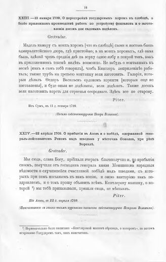 Письма и указы Императора Петра I к адмиралтейств - советнику Александру Васильевичу Кикину. О прибытии в Азов и о победе, одержанной генерал-лейтенантом Реном над шведами у местечка Соколна, при реке Ворскле. Из Азова, в 22 д. апреля 1709