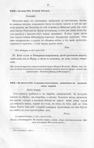 Письма и указы Императора Петра I к адмиралтейств - советнику Александру Васильевичу Кикину. О разных недостатках, найденных на адмиральском корабле. С корабля Выборга, в 23 д. августа 1710