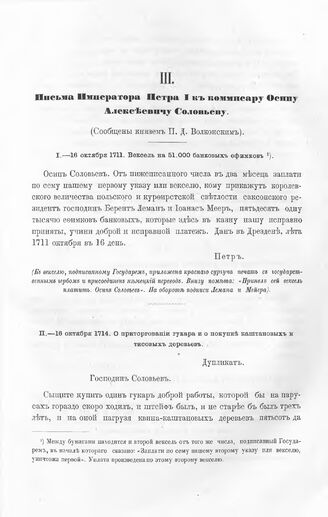 Письма Императора Петра I к коммисару Осипу Алексеевичу Соловьеву. Вексель на 51.000 банковых ефимков. 16 октября 1711