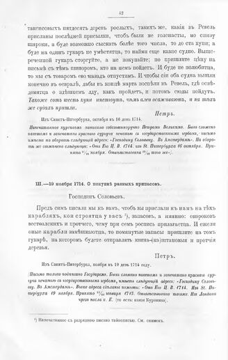 Письма Императора Петра I к коммисару Осипу Алексеевичу Соловьеву. О покупке разных припасов. Из Санкт-Питербурха, ноября в 19 день 1714 году