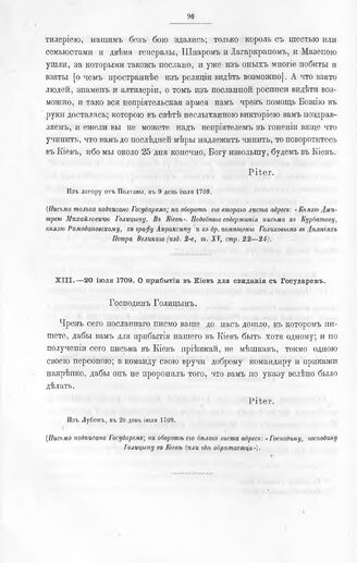 Письма и указы Императора Петра I к киевскому губернатору, князю Дмитрию Михайловичу Голицыну. О прибытии в Киев для свидания с Государем. Из Лубен, в 20 день июля 1709