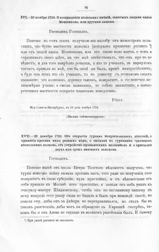Письма и указы Императора Петра I к киевскому губернатору, князю Дмитрию Михайловичу Голицыну. Об открытии турками неприятельских действий, о принятии против них разных мер, о высылке к турецким границам нескольких полков, об устройстве провиантских магазинов и о присылке двух или трех знатных волохов. Из Санктъ-Питербурха, 23 декабря 1710