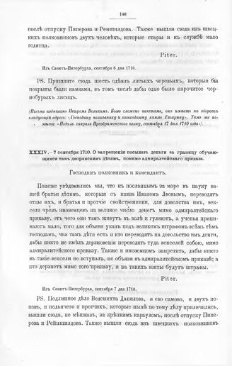 Указы и письма Императора Петра I к московскому коменданту, а потом сибирскому губернатору, князю Матвею Петровичу Гагарину. О запрещении посылать деньги за границу обучающимся там дворянским детям, помимо адмиралтейского приказа. Из Санкт-Питербурха, сентября 7 дня 1710
