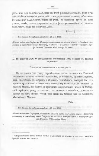Указы и письма Императора Петра I к московскому коменданту, а потом сибирскому губернатору, князю Матвею Петровичу Гагарину. О немедленном отправлении 1000 солдат в рижский гарнизон. Из Санкт-Питербурха, декабря в 23 день 1710