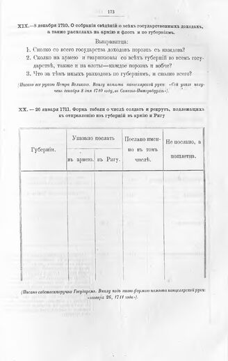 Указы, повеления и письма Императора Петра I разным лицам. О собрании сведений о всех государственных доходах, а также расходах на армию и флот и по губерниям. Санкт-Питербурх, 8 декабря 1710 // Из архива правительствующего сената.