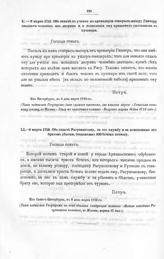 Высочайшие указы и повеления Императора Петра I, данные правительствующему сенату. Об отдаче в ученье к артиллерии генерал-майору Гинтеру двадцати человек из дворян и о позволении ему принимать охотников в пушкари. Из Питербурха, в 6 день марта 1712-го