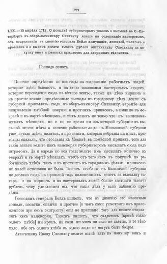 Высочайшие указы и повеления Императора Петра I, данные правительствующему сенату. О посылке губернаторам указов о высылке в С.-Петербург к обер-коммисару Синявину денег на содержание мастеровых, об отправлении в дивизию генерала Вейде аммуниции, лошадей, палаток и провианта и о выдаче десяти тысяч рублей англичанину Спѳльману на покупку вин и разных припасов для дворцового ведомства. Из Санкт-Питербурха, апреля 15 дня 1712 года