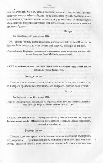 Эпоха Петра I -- Письма и бумаги императора Петра Великого 1712 г.