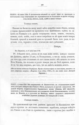 Высочайшие указы и повеления Императора Петра I, данные правительствующему сенату. О доставлении сведений по какой цене в прошлом и настоящем году отпускались из Архангельска в Голландию и другие государства смола, пенька, клей, хлеб и иные товары...
