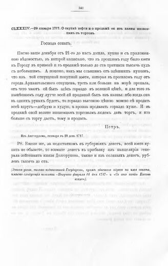 Высочайшие указы и повеления Императора Петра I, данные правительствующему сенату. О скупке юфти и о продаже ее из казны иноземцам с торгов. Из Амстердама, января в 29 день 1717 // Из архива правительствующего сената.