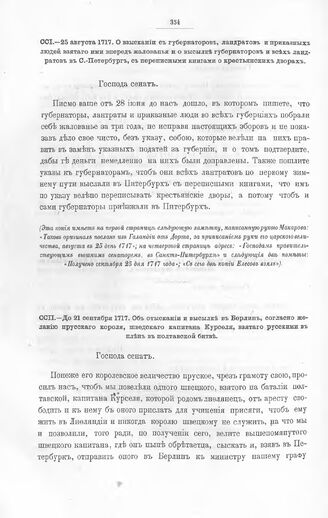 Высочайшие указы и повеления Императора Петра I, данные правительствующему сенату. О взыскании с губернаторов, ландратов и приказных людей взятого ими вперед жалованья и о высылке губернаторов и всех ландратов в С.-Петербург, с переписными книгами о крестьянских дворах. Сентября 25 дня 1717 года // Из архива правительствующего сената.
