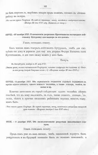 Высочайшие указы и повеления Императора Петра I, данные правительствующему сенату. Об укомплектовании рекрутами финляндского корпуса. В 6 день декабря 1717 // Из архива правительствующего сената.
