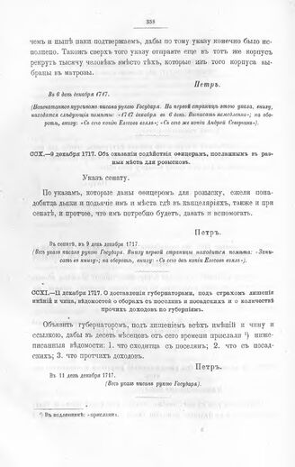 Высочайшие указы и повеления Императора Петра I, данные правительствующему сенату. Об оказании содействия офицерам, посланным в разные места для розысков. 9 день декабря 1717 // Из архива правительствующего сената.