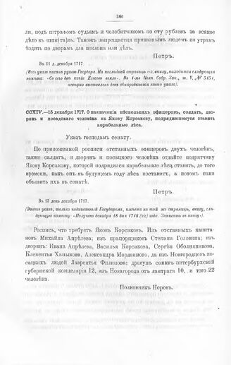 Высочайшие указы и повеления Императора Петра I, данные правительствующему сенату. О назначении нескольких офицеров, солдат, дворян и посадского человека к Якову Корсакову, подрядившемуся ставить корабельные леса. В 15 день декабря 1717 // Из архива правительствующего сената.