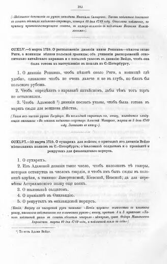 Высочайшие указы и повеления Императора Петра I, данные правительствующему сенату. О сухарях для войск; о присылке из дивизии Вейде нескольких полков в С.-Петербурге; о жалованье солдатам и о провианте и рекрутах для финляндского корпуса. Марта 10 дня 1719 года // Из архива правительствующего сената.