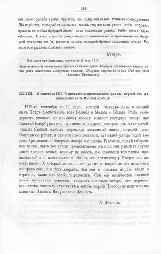 Высочайшие указы и повеления Императора Петра I, данные правительствующему сенату. О проведении прѳспѳктивой улицы, идущей от Адмиралтейства к Ямской слободе. 11 сентября 1719