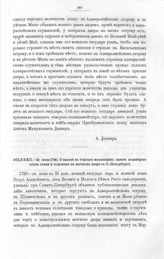 Высочайшие указы и повеления Императора Петра I, данные правительствующему сенату. О вызове к торгам желающих занять новостроящиеся лавки и харчевни на мытном дворе в С.-Петербурге. 21 июня 1720