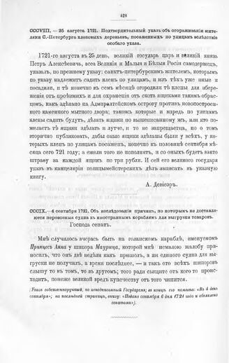 Высочайшие указы и повеления Императора Петра I, данные правительствующему сенату. Подтвердительный указ об огораживании жителями С.-Петербурга кленовых деревьев, посаженных по улицам вследствие особого указа. 25 августа 1721 // Из архива правительствующего сената.