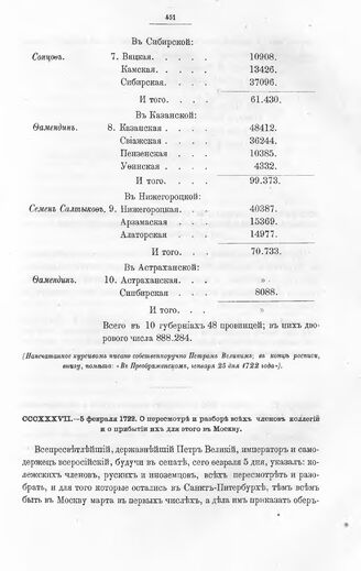 Высочайшие указы и повеления Императора Петра I, данные правительствующему сенату. О пересмотре и разборе всех членов коллегии и о прибытии их для этого в Москву. 5 февраля 1722