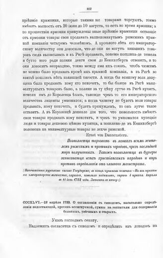 Высочайшие указы и повеления Императора Петра I, данные правительствующему сенату. О соглашении с синодом, касательно определения недостающей, против ассигнуемой, суммы на госпитали для содержания больных, увечных и старых. В Москве, в сенате, апреля 12 дня 1722 года // Из архива правительствующего сената.