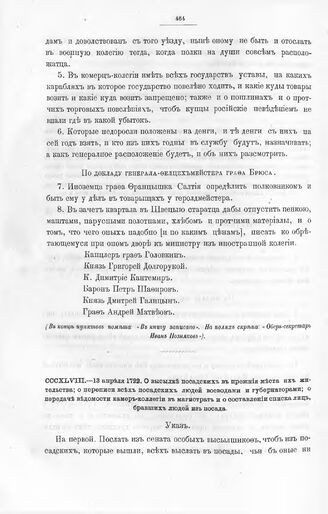 Высочайшие указы и повеления Императора Петра I, данные правительствующему сенату. О высылке посадских в прежние места их жительства; о переписи всех посадских людей воеводами и губернаторами; о передаче ведомости камер-коллегии в магистрат и о со...
