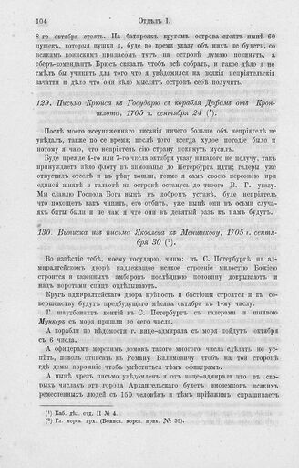 Письмо Крюйса к Государю с корабля Дефам от Кроншлота, 1705 г. сентября 24 // Каб. дел. отд. II № 4.