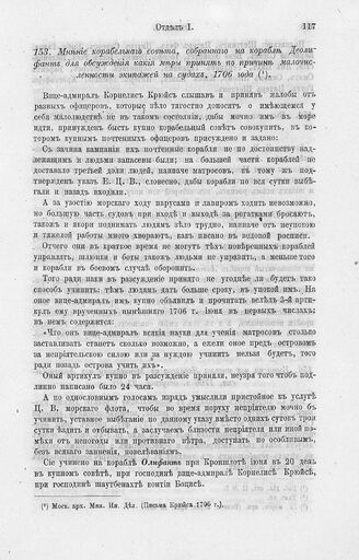 Мнение корабельного совета, собранного на корабле Деолифант для обсуждения какие меры принять по причине малочисленности экипажей на судах, 1706 года // Моск. арх. Мин. Ин. Дел. (Письма Крюйса 1706 г.).