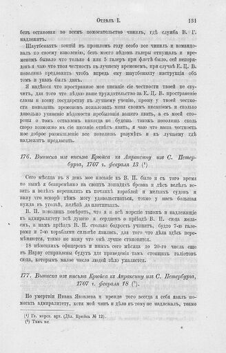 Выписка из письма Крюйса к Апраксину из С. Петербурга, 1707 г. февраля 18 // Гл. морск. арх. (Дел. Крюйса № 12).
