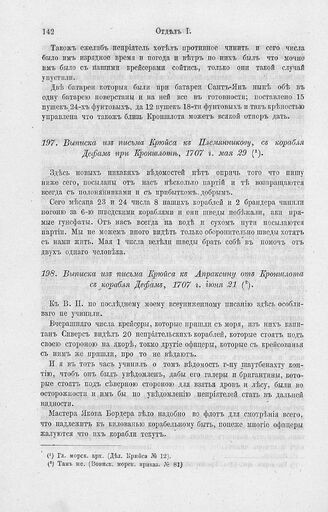 Выписка из письма Крюйса к Племянникову, с корабля Дефам при Кроншлоте, 1707 г. мая 29 // Гл. морск. арх. (Дел. Крюйса № 12).