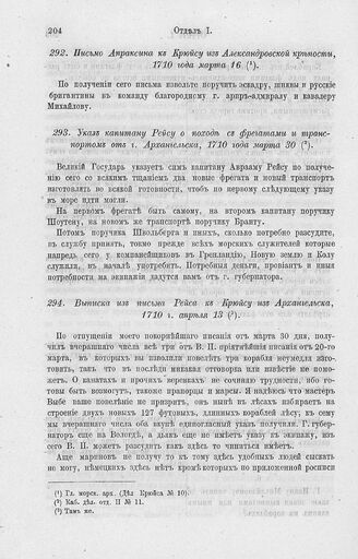 Указ капитану Рейсу о походе с фрегатами и транспортом от г. Архангельска, 1710 года марта 30 // Каб. дел. отд. II № 11.