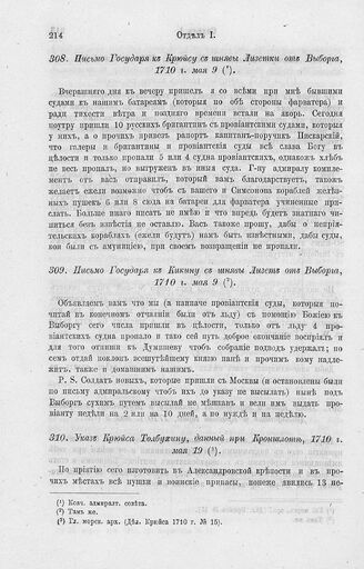 Письмо Государя к Крюйсу с шнявы Лизетки от Выборга, 1710 г. мая 9 // Ковч. адмиралт. совета.