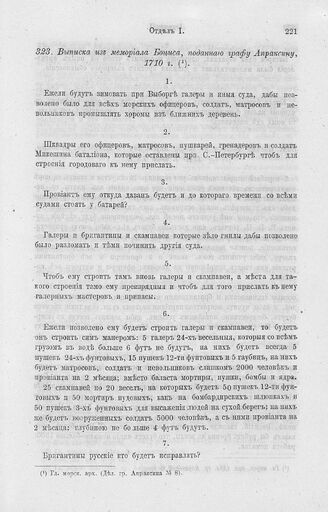 Выписка из мемориала Боциса, поданного графу Апраксину, 1710 г. // Гл. морск. арх. (Дел. гр. Апраксина № 8).