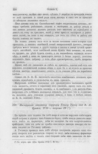 Инструкция капитану поручику Тенису Трану от В.А. Крюйса, 1710 г. августа 29 // Гл. морск. арх. (Дел. Крюйса 1710 г. № 15).