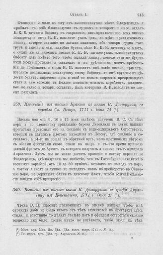 Выписка из письма князя В. Долгорукова к графу Апраксину из Копенгагена, 1711 г. июня 17 // Гл. морск. арх. (Дел. гр. Апраксина № 15).