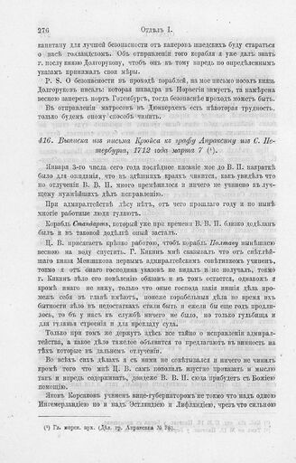 Выписка из письма Крюйса к графу Апраксину из С. Петербурга, 1712 года марта 7 // Гл. морск. арх. (Дел. гр. Апраксина № 38).