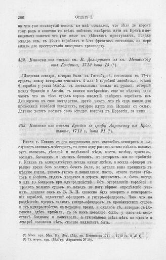 Выписка из письма Крюйса к графу Апраксину из Кроншлота, 1712 г. июня 21 // Гл. морск. арх. (Дел. гр. Апраксина № 38).
