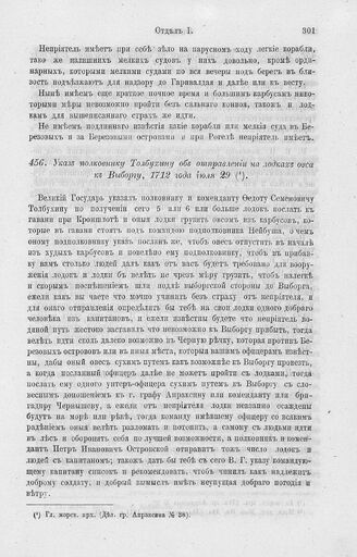 Указ полковнику Толбухину об отправлении на лодках овса к Выборгу, 1712 года июля 29 // Гл. морск. арх. (Дел. гр. Апраксина № 38).