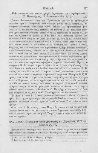 Выписка из письма графа Апраксина к Государю из С. Петербурга, 1712 года октября 23 // Каб. дел. отд. II № 15.