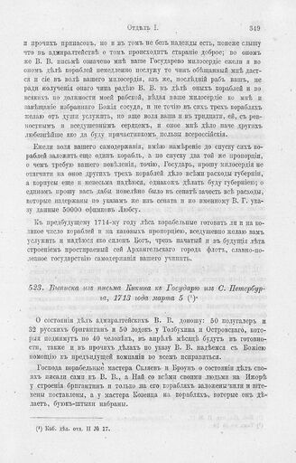 Выписка из письма Кикина к Государю из С. Петербурга, 1713 года марта 5 // Каб. дел. отд. II № 17.