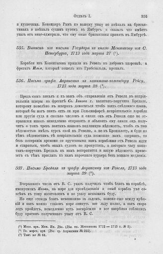 Выписка из письма Государя к князю Меншикову из С. Петербурга, 1713 года марта 27 // Моск. арх. Мин. Ин. Дел. (Дел. кн. Меншикова 1712—1715 г. № 5).