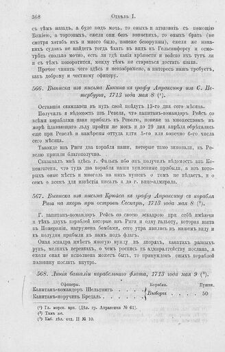Выписка из письма Крюйса к графу Апраксину с корабля Рига на якоре при острове Сескаре, 1713 года мая 8 // Гл. морск. арх. (Дел. гр. Апраксина № 61).