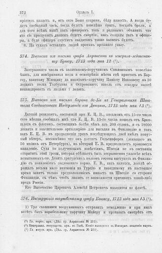 Инструкция шаутбенахту графу Боцису, 1713 года мая 15 // Гл. морск. арх. (Дел. гр. Апраксина № 251).